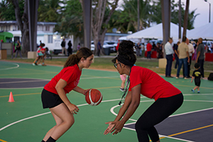 Como parte de los trabajos realizados, la cancha de baloncesto al aire libre de unos 3,000 pies cuadrados fue reacondicionada y pintada. Se le instalaron dos postes de 40 pies de altura, con conexión eléctrica y se instalaron cuatro luminarias tipo LED.